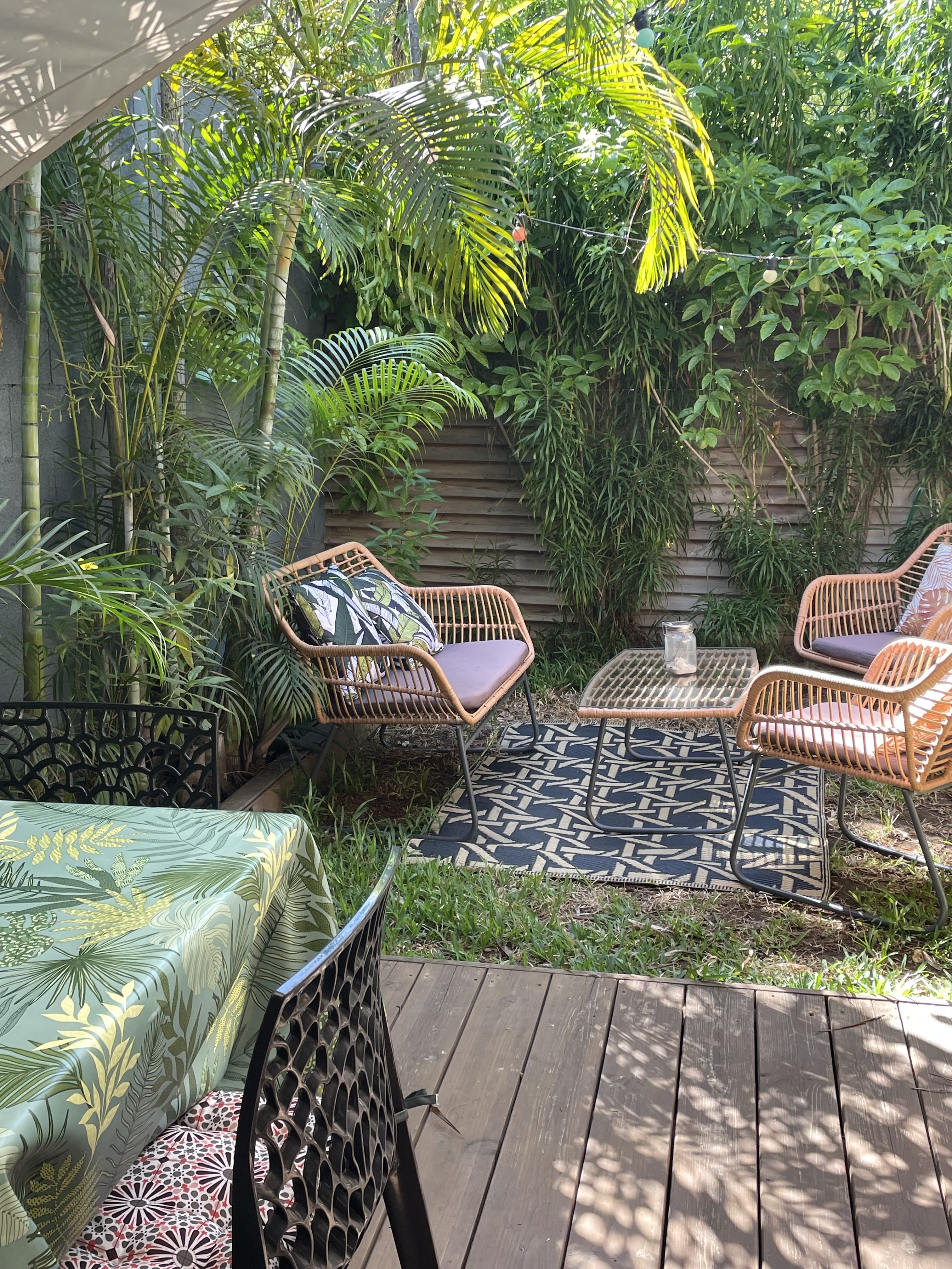Il dispose en outre d'un petit jardin tropical privatif et d'une cuisine ouverte sur un bar convivial ou famille et amis pourront vous rejoindre pour un apéritif ou une soirée.